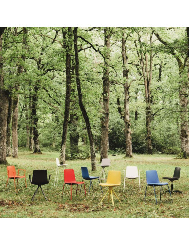 L'estructura metàl·lica de la cadira està pintada com el seient, en àmplia gamma de colors: