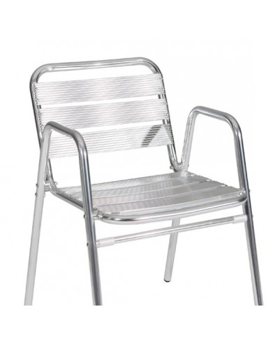 Silló o cadira amb braços d'alumini apilable. La cadira té 7 làmines. Fixacions en acer inoxidable. Coixí com opció.