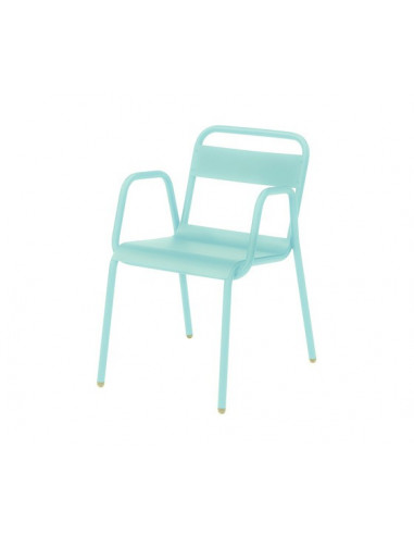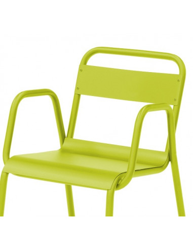 Butaca o cadira amb braços en acer galvanitzat en calent per a exteriors, lacada en epoxi en una àmplia gamma de colors vius. Vegeu també la butaca i tamboret de partit.