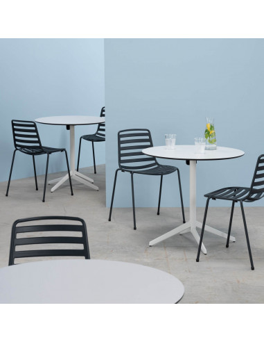 Cadira metàl·lica d'extreior apilable model Street (vàlid per a ús interior i exterior) fabricats en tubular d'acer que li dóna gran resistència i aspecte minimalista. L'àmplia gamma de colors que li donen un aspecte desenfadat i modern.