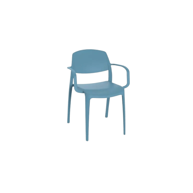 Cadira amb braços per a ús interior i exterior. Injectada en polipropilè amb fibra de vidre en àmplia gamma de colors moderns i càlids.