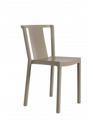 Cadira sense braços per a ús interior i exterior de mesures 48 d'ample x 47 de fons x 78 d'alt. Injectada en polipropilè amb fibra de vidre de colors blanc, vermell verd oliva, xocolata, negre, sorra i toscà.