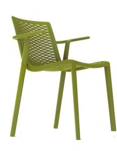 Cadira per a ús interior i exterior. Injectada en polipropilè i fibra de vidre de colors blanc, verd oliva, xocolata, negre, vermell, sorra i toscana.