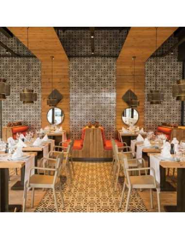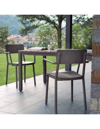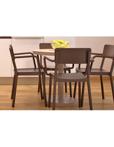 Butaca model LISBOA amb braços dissenyat per Joan Gaspar, per a interior i exterior. S'injecta en polipropilè, amb fibra de vidre, utilitzant la tecnologia de gas-ajudar a l'emmotllament. Apilable. Protecció contra els raigs UV. Doni un estil retro o vintage a la seva terrassa o local.