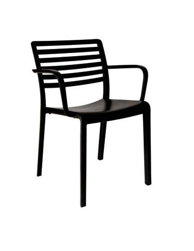 Cadira amb braços per a interior i exterior utilitzar mesures 57 ample x 54 ample x 80 d'alt. S'injecta en polipropilè blanc o negre.