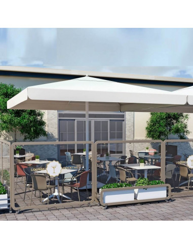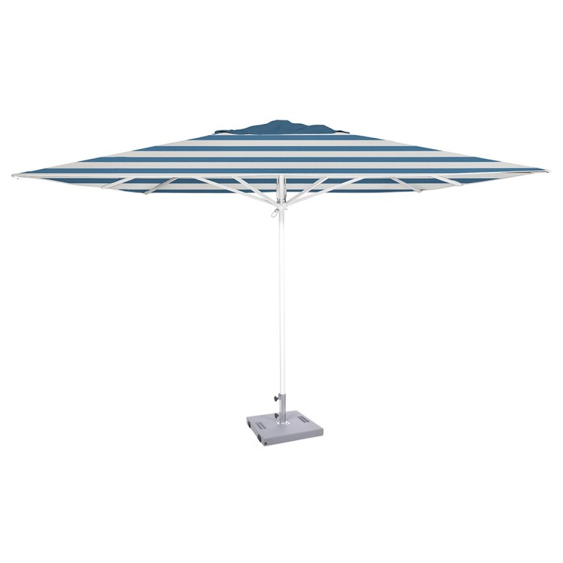 Para-sol d'alumini quadrat de 3.5 x 3.5 metres sota comanda. El para-sol s'ofereix en Oelfín color sorra, però es pot sol·licitar en àmplia gamma de colors. Bases disponibles com a opció. Amb fuga vents i sense volant. Màstil en color blanc o antracita.
