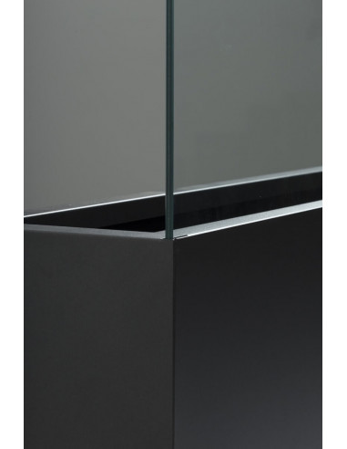 Hidrojardinera per delimitar espais a Acer Inoxidable Ferrític Lacat Mate | AISI 430 | Doble làmina de vidre transparent de 4mm | Unida per una làmina butiral de Polivinil (PVB) | Vores polits i corbats. Inclou fixacions al terra. Colors: Blanc, Plom i Corten.
