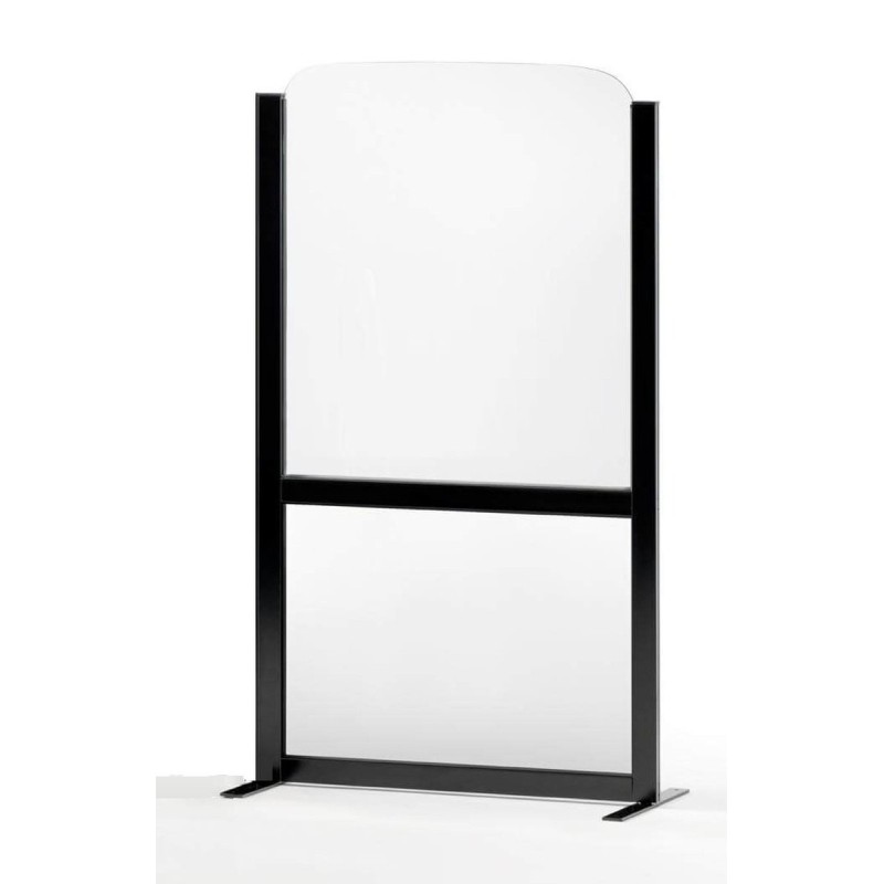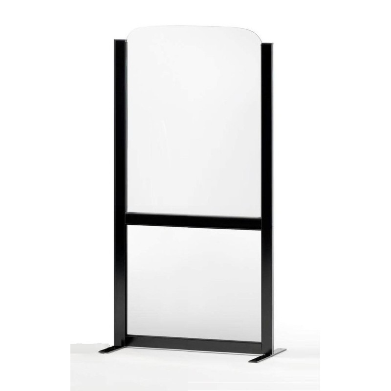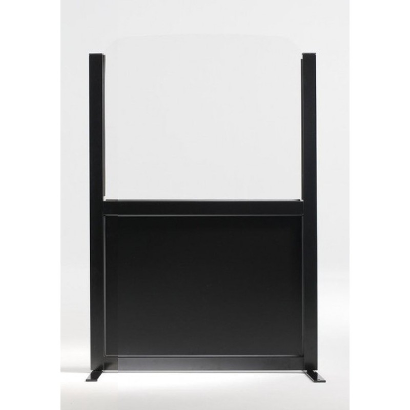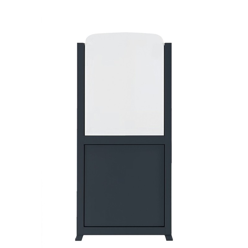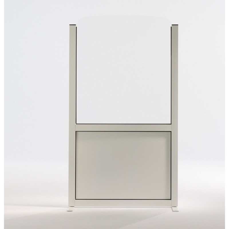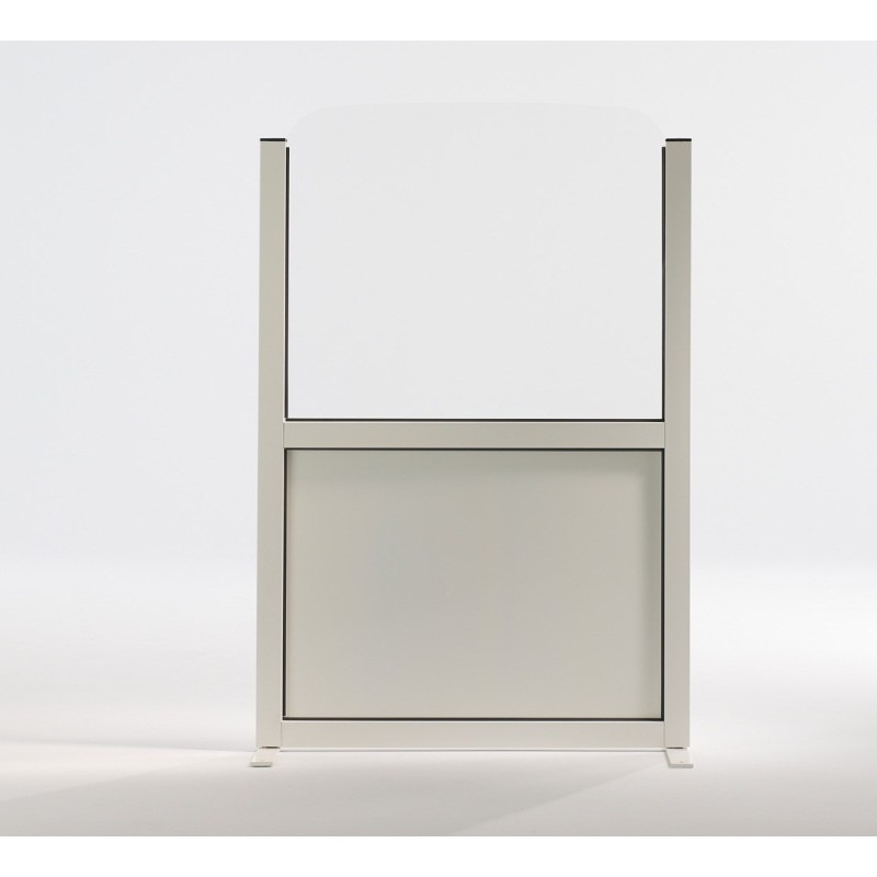 Paravent per a bars i terrasses de l'hostaleria. Mampara de 150cm o 180cm d'alçada. 2 amplades disponibles: 70 i 100cm d'amplada. Estructura d'alumini, de diversos colors amb panells d'alumini, lacat a la part inferior* i acrílic transparent a la part superior. Ancoratge inclòs.