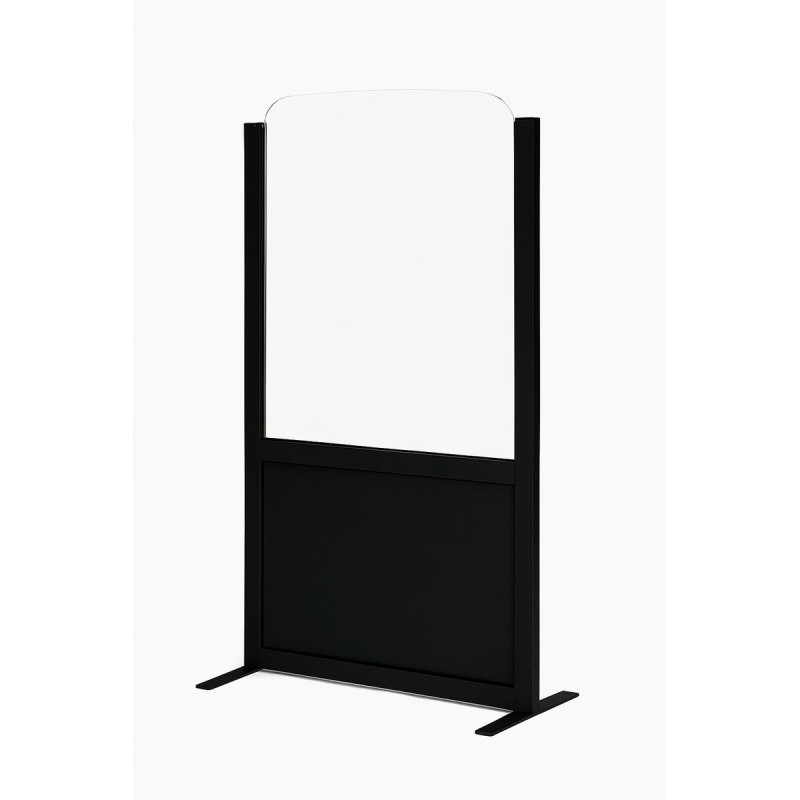 Paravent per a bars i terrasses de l'hostaleria. Mampara de 150cm o 180cm d'alçada. 2 amplades disponibles: 70 i 100cm d'amplada. Estructura d'alumini, de diversos colors amb panells d'alumini, lacat a la part inferior* i acrílic transparent a la part superior. Ancoratge inclòs.