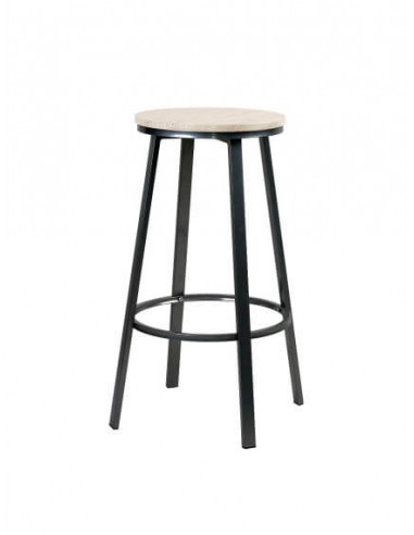 Estructura de ferro de 30x15x0,8 mm., pintada color Negre. Seient de MDF folrat amb PVC en 4 acabats de colors (A1, A2, A3 i A4). Diàmetre 35cm.