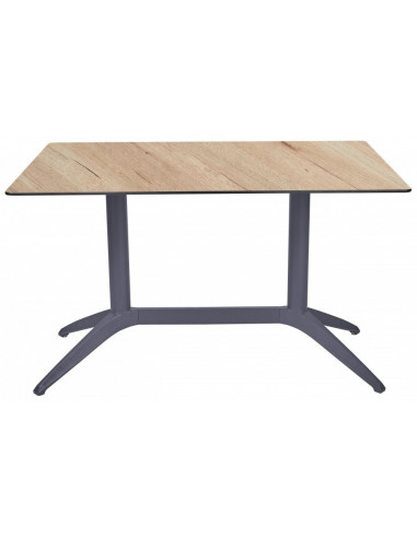 Taula rectangular per a terrassa d'hostaleria ade disseny molt moderna i actual. Fabricada amb base de polipropilè reforçat amb fibra de vidre amb tub d'alumini a joc. Disponible en diversos formats i colors. Tauler en compacte fenòlic. veure a joc la taula de la mateixa col·lecció amb taulell compacte fenólic.