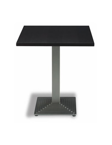 Sèrie de taules amb central peu d'acer, pintat en colo d'alumini . Taula alçada tamboret 110cm. Taula per a ús en interiors. Sobres disponibles: 60x60cm, i diam.60cm en material SM molt resistent en diversos colors disponibles. Altres mides i acabats consultar. Vegeu també la taula baixa de la mateixa col·lecció.
