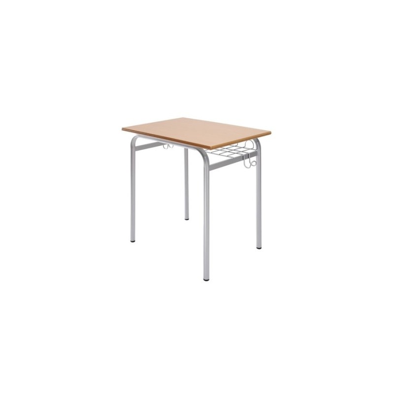 Escriptori pupitre escolar amb estructura de tub d'acer, de color gris, verd, negre o amb safata de documents inferior. TAulell superior estratificat en diversos colors amb arestes en DM o PVC. Mesures de 60 x 40 cm . Pupitre disponible en talles de 3 a 6 (de 7 a 14 anys).