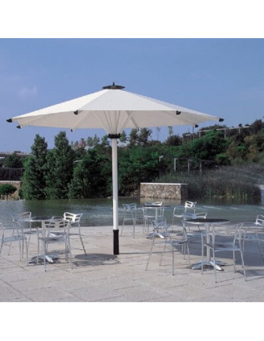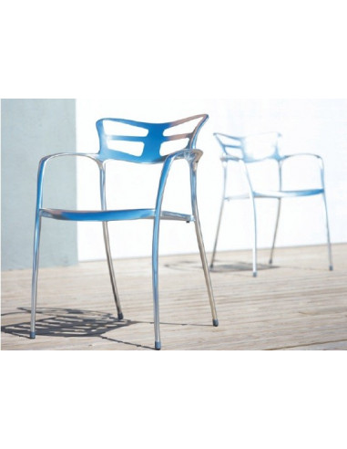 Stackable cast aluminum armchair, with aluminum seat. For indoor and outdoor use. Measures 560x550x780 mm. Available in polyester paint finish in various colors. As an option, gloss anodized aluminum finish.