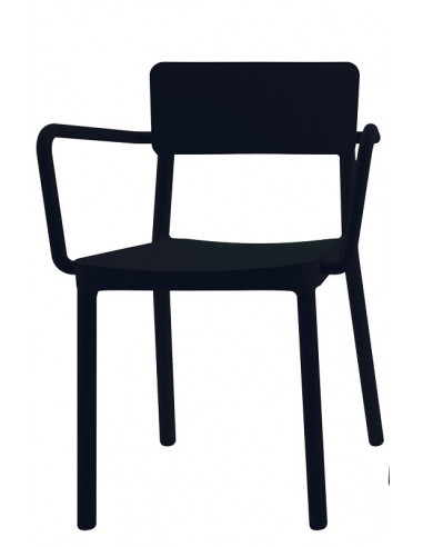 Armchair for indoor and outdoor use. Seat and back injected with polypropylene with glass fibre, using gas assisted injection moulding technology.