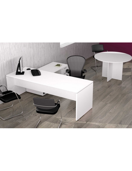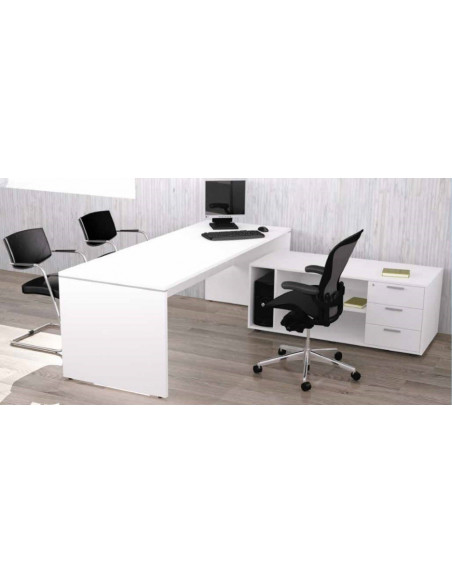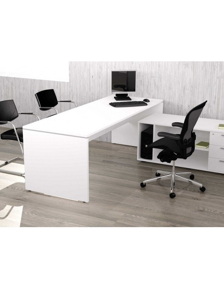 Executive desk or office table 200x80cm. Bureau office with modesty panel in Bi-laminated 25 mm thickness chipboard. Oak, White and Maple colors.
