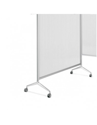 Screen partition with wheels. Ideal for offices and commercial preor 205cm high. The structure is made of matt silver anodized aluminum profile and the panel is made of polycarbonate, a material that is very easy to wash. The panel can be easily moved since it has wheels. Includes brake.
