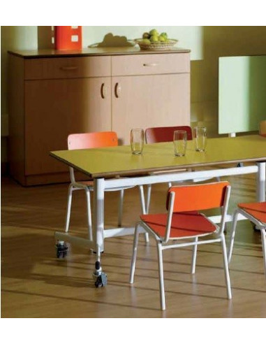 School chair children. Tube structure Ø20x1 chromed steel or painted with epoxy-polyester in white, green or gray. Seat and back in laminated poplar plywood with polished edges. Stackable. Dimensions: 33x73 cm. Size 1 seat height: 26 cm; size 2: 32 cm; Size 3: 36cm