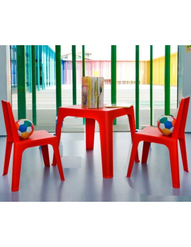 Set of furniture for children's room collection JULIET composed by: 1 table Juliet + 2 chairs Juliet. The set of furniture can be used in interior and exterior garden or terrace. The set is available in several colors, and can be all one color or combine the colors of the 3 pieces (Assorted). The chairs are stackable and to the children-they love it!