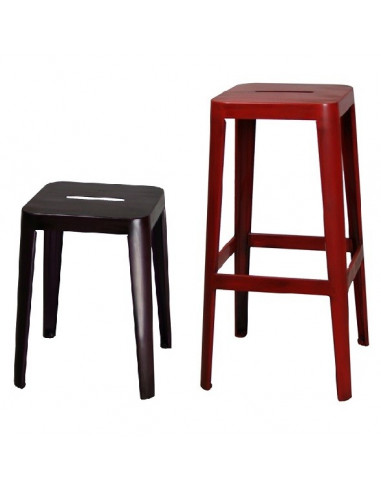 High bar stool indoor vintage style made of steel. It is available in a wide range of aged paint colors that gives it the characteristic vintage air, and is also available in standard smooth paint. Matching, available chairs and armchairs or chairs with arms.