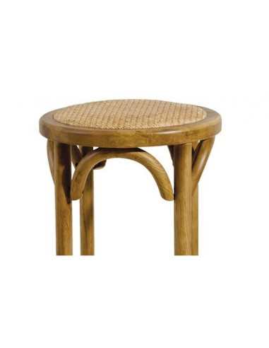 Solid wood stool with rattan seat in natural rattan. The classic design of a timeless stool that adapts to all styles. Ideal for bars, restaurants and high kitchen bars. Natural wood stools finished in matt varnish. Great warmth and quality finishes.