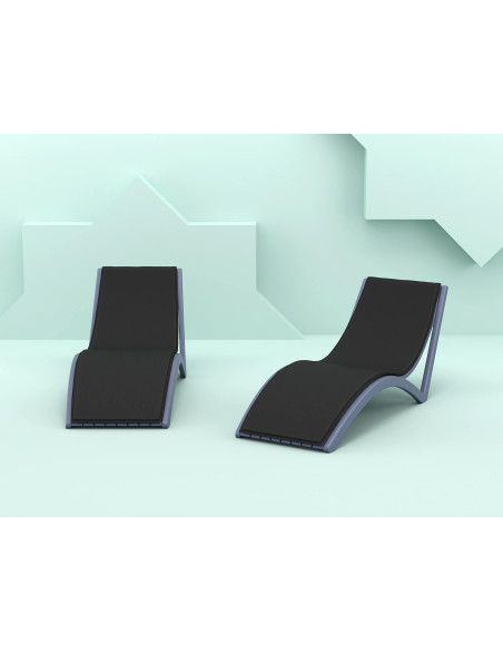 Modern stackable sun lounger, ideal for gardens and swimming pools.
