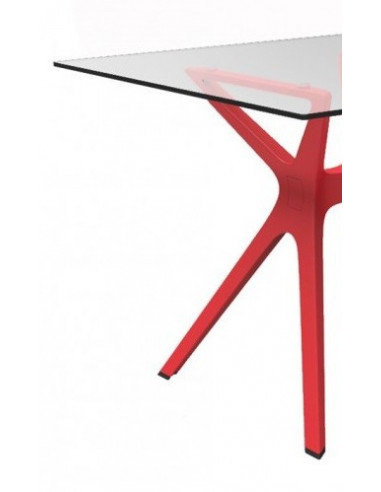 Design table made with a foot in 3 sizes and different finishes. Pie made with 2 feet of resin connected by an aluminum bar. The foot is available in 4 colors: black; sand; Red and white. The above table is available in tempered glass. The table is suitable for outdoor use.