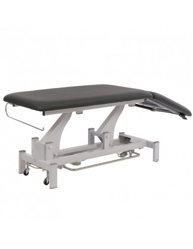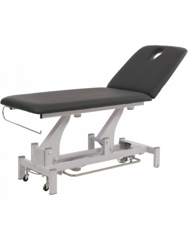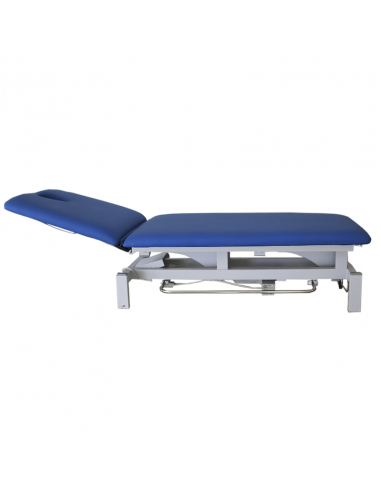 - Control de elevación mediante motor eléctrico, con mando perimetral accionado por el pie, mejorando la manejabilidad y comodidad del terapeuta.