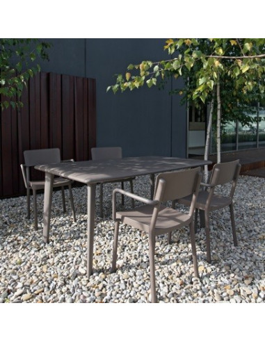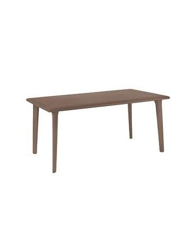 Mesa de terraza y jardín en resina disponible en 2 medidas disponibles: 90x90cm y 160x90cm apto para uso exterior. Disponible en 2 colores: blanco y marrón chocolate. Con esta mesa, revoluciona el concepto de la resina. La mesa de jardín es duradera como las de siempre pero con una estética actualizada. Estructura interior de aluminio.