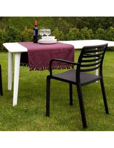Mesa de terraza y jardín en resina disponible en 2 medidas disponibles: 90x90cm y 160x90cm apto para uso exterior. Disponible en 2 colores: blanco y marrón chocolate. Con esta mesa, revoluciona el concepto de la resina. La mesa de jardín es duradera como las de siempre pero con una estética actualizada. Protección contra rayos UV.