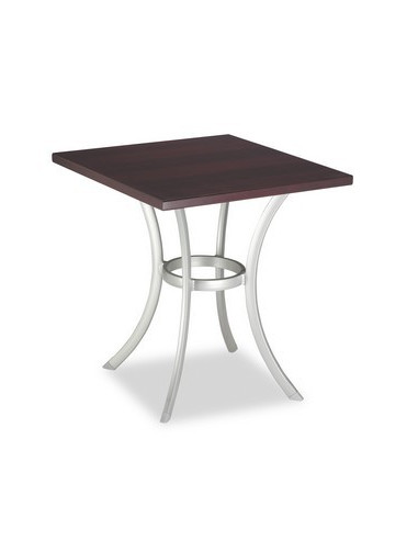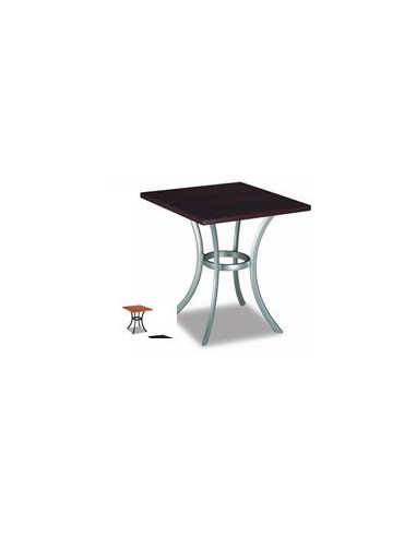 Mesa modelo 436 para interior, compuesta de estructura de tubo de aluminio plastificado y tablero de SM solo color blanco, wengué o montana de diámetro 80 cm o cuadrada de 70x70. Con patas regulables Consultar acabados de exterior a juego.