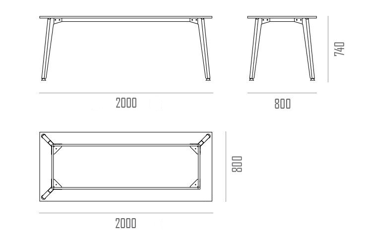 Mesa: medidas 200 cm x 80 cm x 74cm