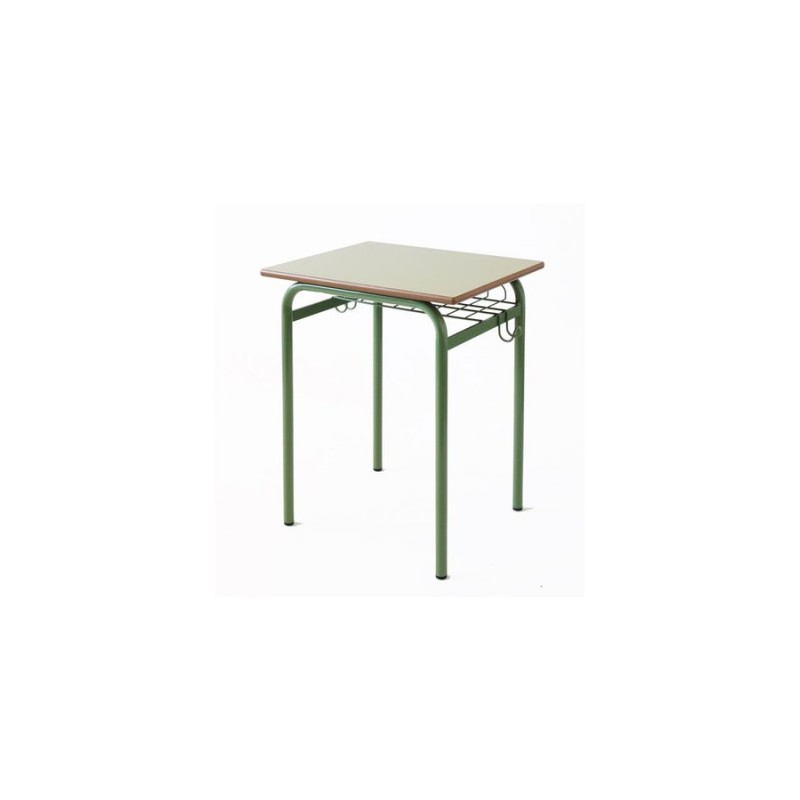 Pupitre escolar con estructura en tubo de acero color gris, verde o negro con bandeja porta documentos en varilla. Tapa en estratificado en varios colores con cantos en DM o PVC. Medidas 60x40 cm . Talla 3 a Talla 6 (de 7 a mayores de 14 años).