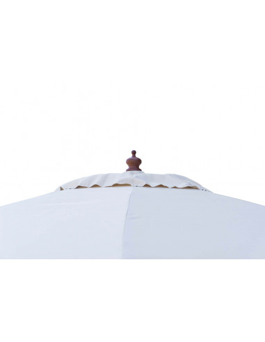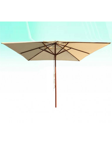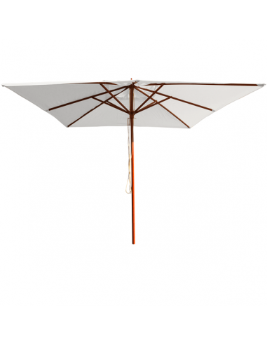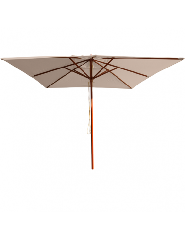 Parasol cuadrado de 3x3 m con estructura de madera (mástil y varillas de madera tropical). Perfecto para adecuar su terraza. Disponible en tejido poliéster color crudo para entrega rápida. Resto de opciones, consultar. Ver base opcional a juego.