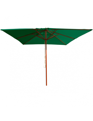 Parasol cuadrado de 3x3 m con estructura de madera: Mástil y varillas de madera tropical en acabado color teka.