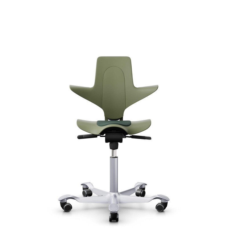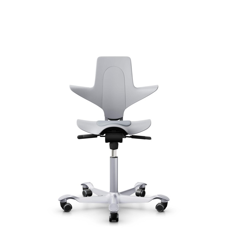 La HÅG Capisco Puls 8010 es una silla con respaldo de plástico y asiento con cojín integrado para una mayor comodidad. El asiento de silla de montar puede ajustarse para posturas de trabajo altas, bajas e incluso de pie, ofreciéndole por tanto una mayor dinámica de movimiento, manteniéndole al mismo tiempo en un correcto equilibrio. Se puede ajustar tanto la altura como la profundidad del asiento, así como la altura del respaldo. La resistencia al balanceo es ajustable y bloqueable. La base se entrega en aluminio negro o lacado en plata. El cilindro de gas de 200 mm es estándar.