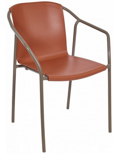 Sillón de terraza de diseño actual, Apilable con estructura de aluminio lacado con una amplio asiento de polipropileno 100% reciclable. Tacos antideslizantes. Anti UV. Disponible en 6 colores diferentes para crear tu propia terraza con estilo. Apto para exteriores como interiores.