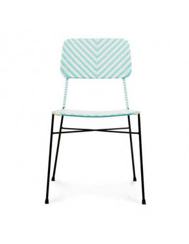 Diseñe su terraza con estas sillas Apilables, coloridas y visualmente muy ligeras. La silla Aitana no es muy grande por lo que se adaptará perfectamente a espacios reducidos. Se fabrica con estructura de hierro negra apta para exterior y rattan sintético en dos combinaciones de color: Blanco-Turquesa y en Blanco-Negro.