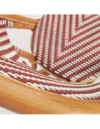 Bonita silla clásica con estructura de caña natural. Tejido trenzado sintético disponible en varios colores. Ideal para decorar la terraza de tu local.
