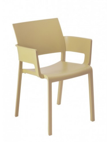 Sillón con brazos para uso interior y exterior . Inyectada en polipropileno.Varios colores disponibles.