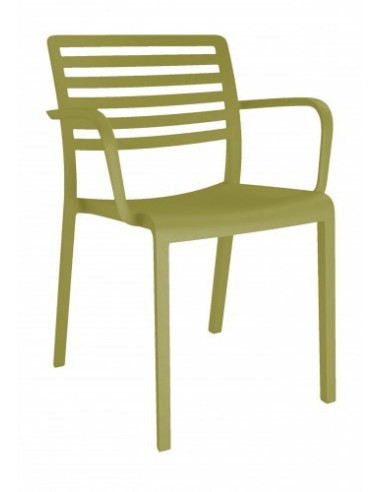 Sillón apilable con brazos. Consigue comodidad sin renunciar a la ligereza visual. Se integra en todos los ambientes gracias a su diseño minimalista. Inyectada en polipropileno en varios colores. Usos público o doméstico. Se vende en cajas de 4 unidades. Ver descuento por cantidades.