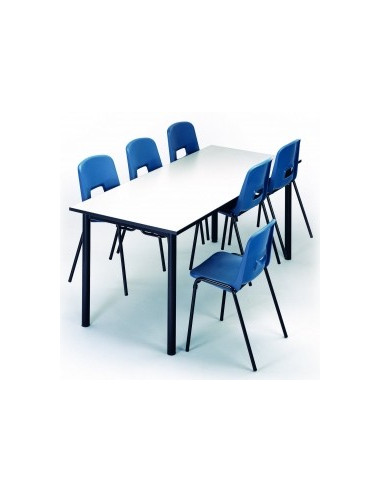 Silla escolar para colgar de mesa y liberar el suelo para una fácil limpieza. Producto indicado para comedores. Silla con estructura en tubo de acero Ø20x1,5 mm, cromada o pintada con Epoxy-poliéster en color verde o negro. Asiento y respaldo en polipropileno verde varios colores. Apilable. Diferentes alturas. Ver mesa a juego.
