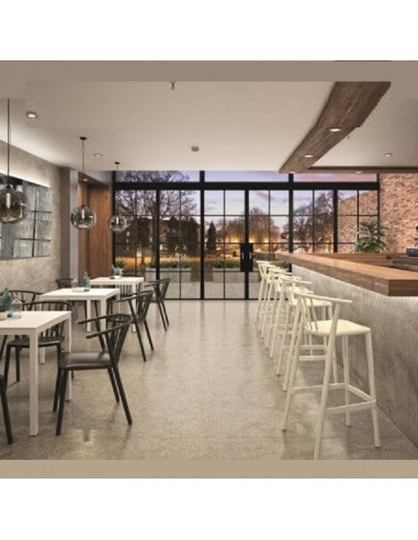 Taburete para uso interior y exterior. Inyectada en fibra de vidrio con PP y protección contra rayos UV. Peso neto de la silla 4,2 kg.