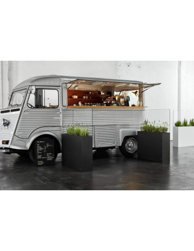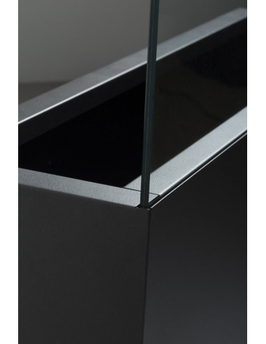 Hydrojardinière pour délimiter les espaces en Acier Inox Ferritique Laqué Mat | AISI430 | Double feuille de verre transparent de 4 mm | Rejoint par une feuille de Polyvinylbutyral (PVB) | Bords polis et incurvés. Comprend des fixations au sol. Couleurs : Blanc, Plomb et Corten.