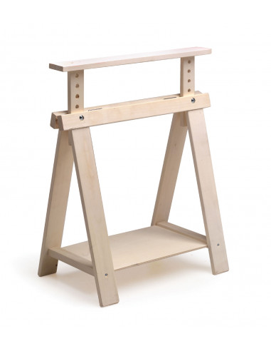 Tréteau en bois réglable avec étagère – Pin massif non verni