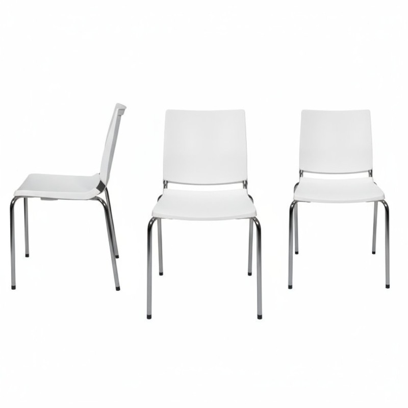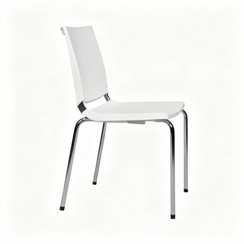 Chaise de bureau empilable polyvalente, à 4 pieds. Conception parfaite pour n'importe quel espace dans un bureau et un bureau. Structure en métal, finition chromée ou noire. Dossier et assise en polypropylène, disponible en différentes couleurs. En option, le siège peut être rembourré. Son design aux lignes épurées, lui permet de se situer dans des espaces de bureaux aussi divers qu'une salle de réunion, des parloirs, un bureau. Parfait aussi en hôtellerie, confortable pour les restaurants et les bars. Voir la chaise de bureau assortie avec accoudoirs et pivot.