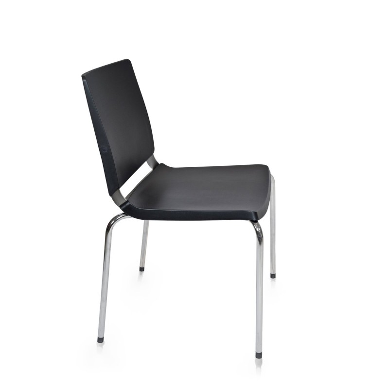 Chaise de bureau empilable polyvalente, à 4 pieds. Conception parfaite pour n'importe quel espace dans un bureau et un bureau. Structure en métal, finition chromée ou noire. Dossier et assise en polypropylène, disponible en différentes couleurs. En option, le siège peut être rembourré. Son design aux lignes épurées, lui permet de se situer dans des espaces de bureaux aussi divers qu'une salle de réunion, des parloirs, un bureau. Parfait aussi en hôtellerie, confortable pour les restaurants et les bars. Voir la chaise de bureau assortie avec accoudoirs et pivot.