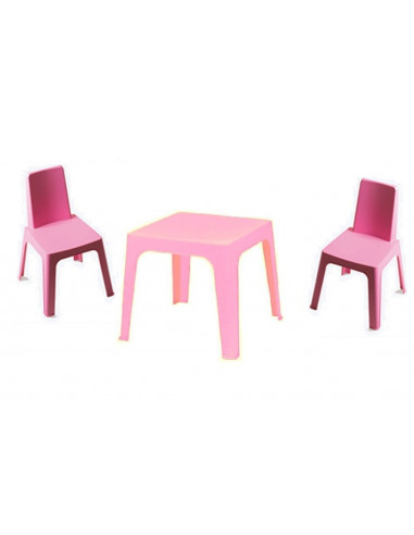 Table d'enfant disponible en différentes couleurs (rose, orange, rouge, vert et bleu). La table est empilable et peut être utilisée aussi bien à l'intérieur : chambre d'enfant, hôtels, ludothèques, crèches, etc. qu'à l'extérieur : jardin, terrasse, etc. Va avec les chaises JULIETA (Set de 1 table + chaises code cju1032001).