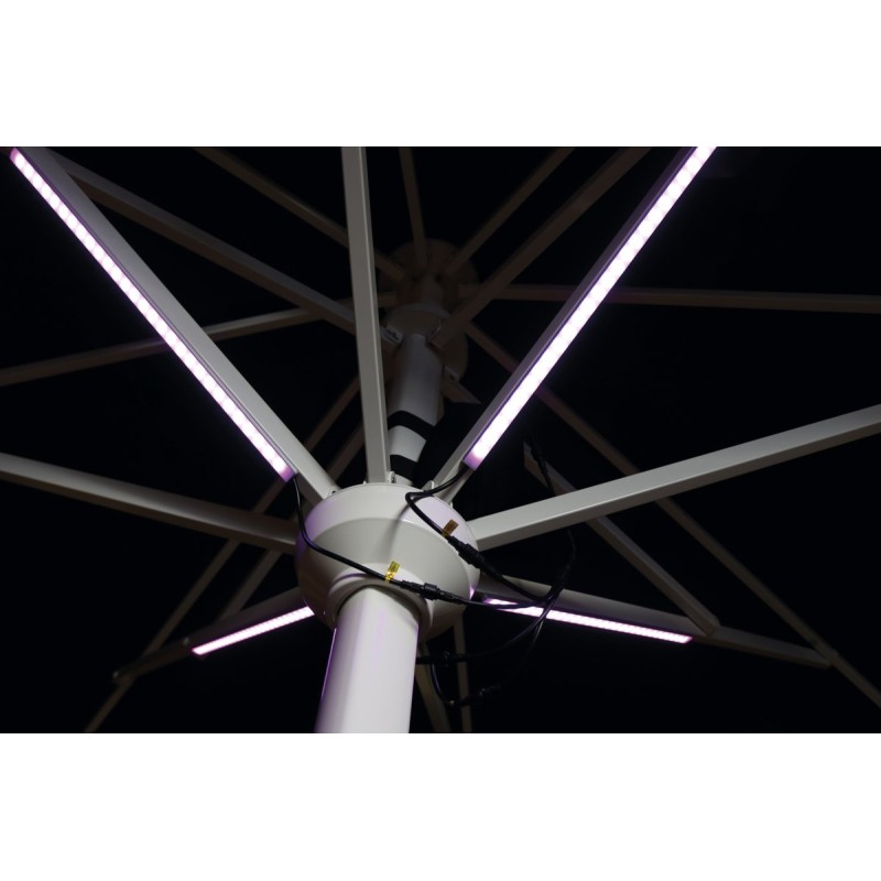 Kit de 4 bandes lumineuses LED de qualité pour parasol d'hôtellerie disponible avec prise éléctrique ou avec batterie rechargeable.