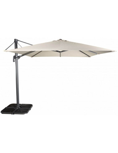Parasol de haute qualité modèle FLEXO déporté. Disponible avec une structure en alu peint en couleur blanche ou noir. Taille : 3x3m. Tube de 65mm de diamètre. Possibilité de personnaliser vos parasols avec le logo de l'entreprise. Fabriqué en Espagne avec une toile acrylique disponible dans une large gamme de couleur, de 280gr/m3 en 4 couleurs possibles. Base de 100kg en option.